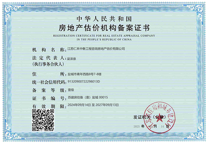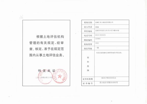 • 房地產(chǎn)估價機(jī)構(gòu)備案證書
